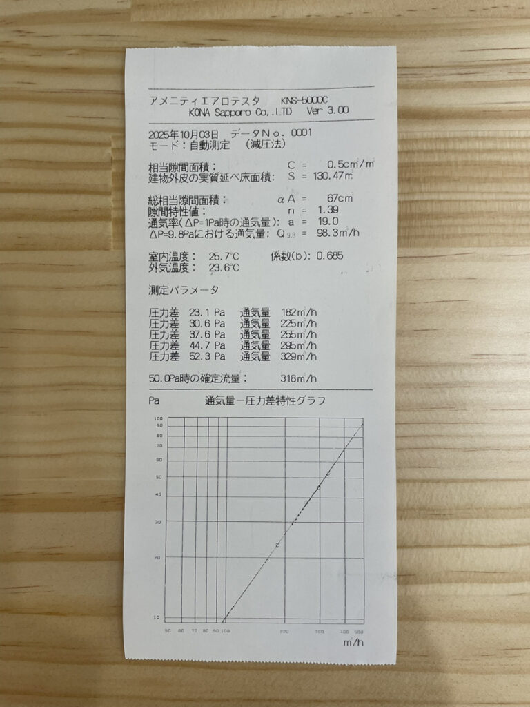 C値0.5は、30坪程度の家全体にある隙間がハガキ約0.3枚分しかない、非常に高い気密性能を示します。