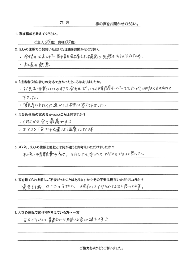 【宇和島市 注文住宅】Y様からアンケートにご回答いただきました