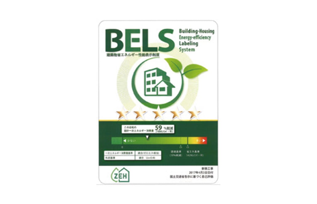 省エネ性能のみえる化、住宅の資産証明書BELS(建築物省エネルギー性能表示制度)において最高等級の★★★★★5つ星を取得しています。